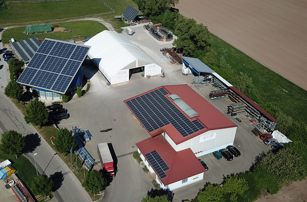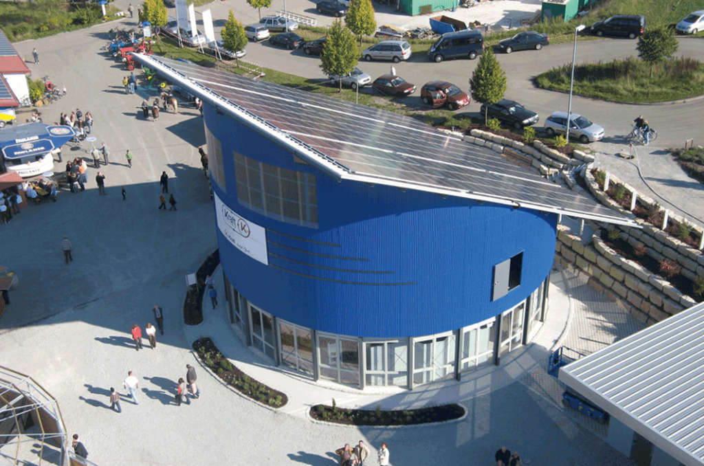 Ein neues Bürogebäude in Form einer KRAFT-Rundhalle mit drehbarem Solardach entsteht.