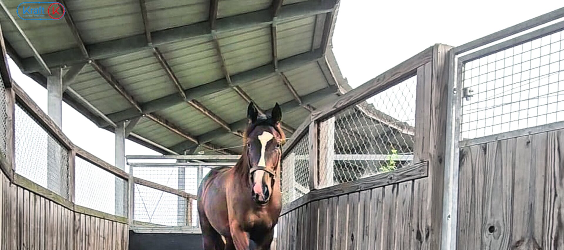 Boden-Führanlage mit Hufschlagdach, Typ Eco