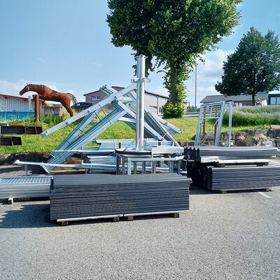 Gleitring-Führanlage mit Hufschlag- oder Komplettdach