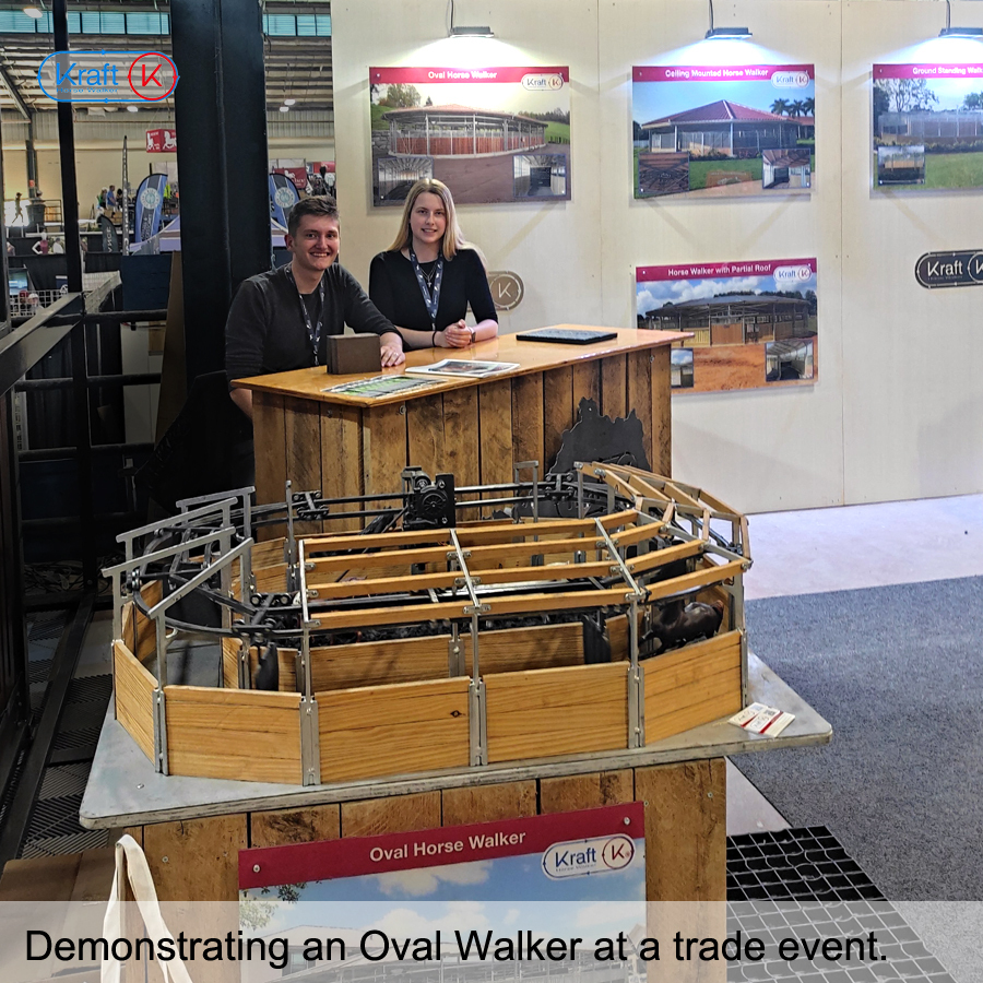 KRAFT USA specializes in the design, manufacture and assembly of horse walkers, lunging pens and stables. We are a mid-sized operation in Winchester, Kentucky, serving the equestrian community across North and South America, with global headquarters in Germany.
