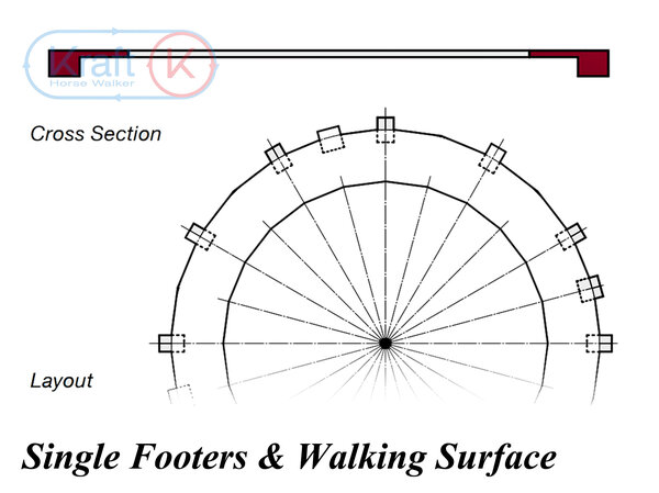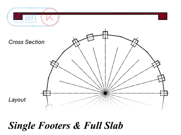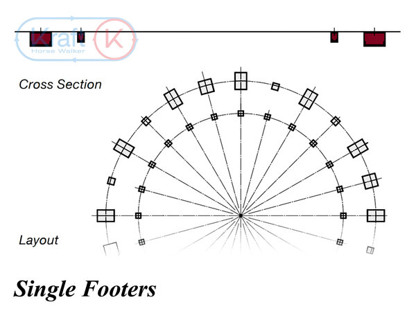 KRAFT provides the following variations of concrete foundation designs depending on the style of horse walker: