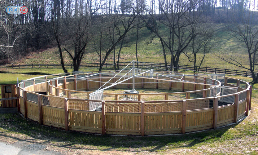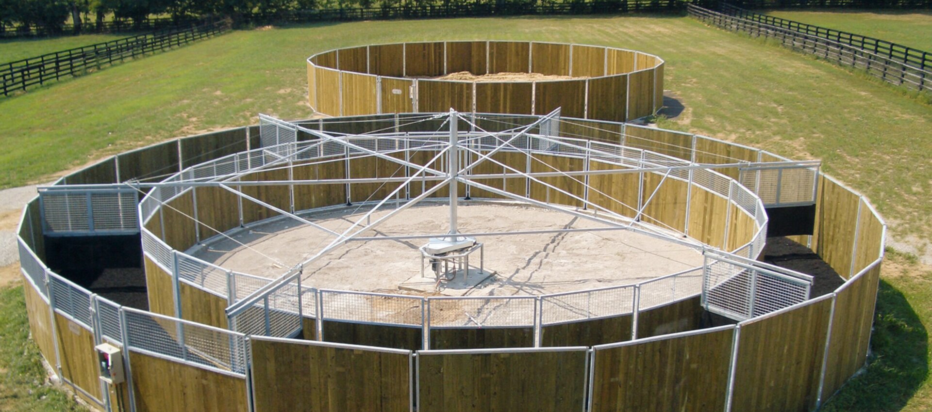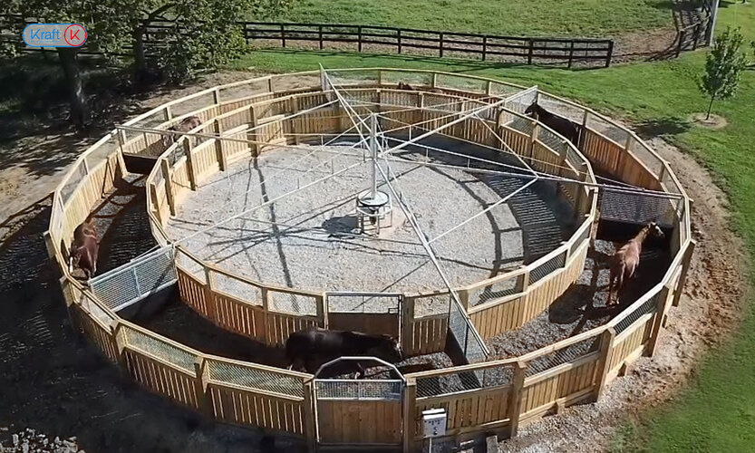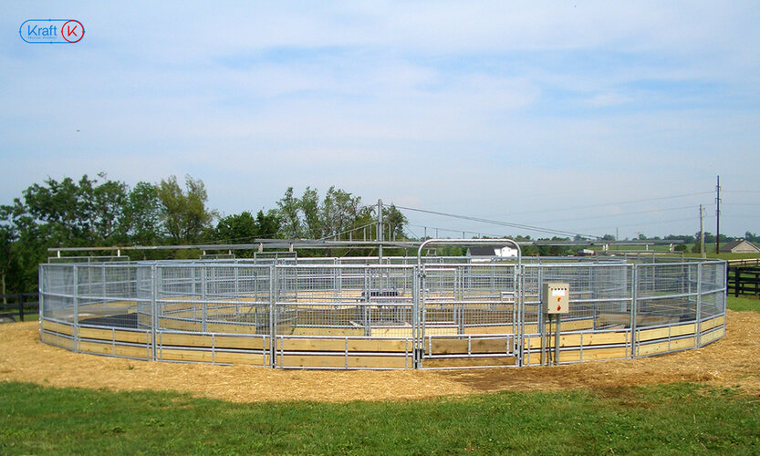 This horse walker can be purchased as a do-it-yourself kit without fences.