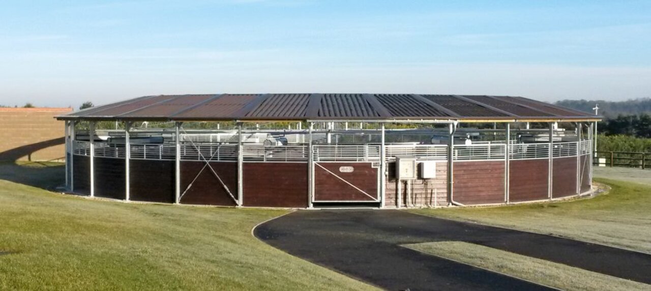 Ground-Standing Horse Walker with partial roof, 18m, 6 Horses, England
